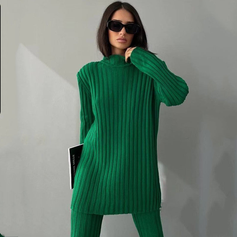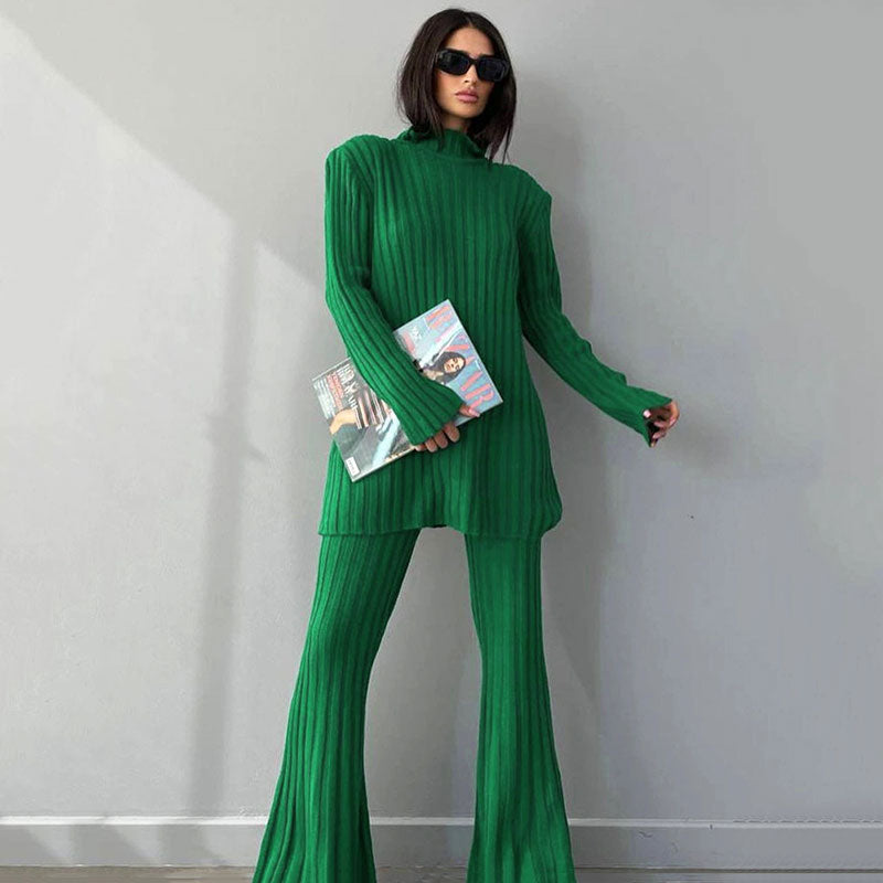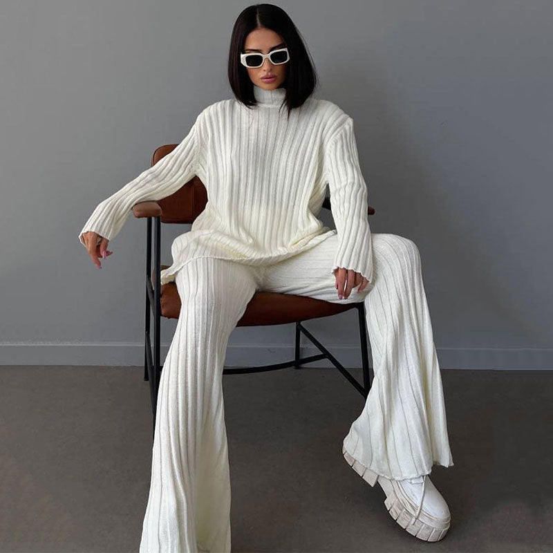 Knitted Turtleneck & Wide-Leg Pants Set for Women