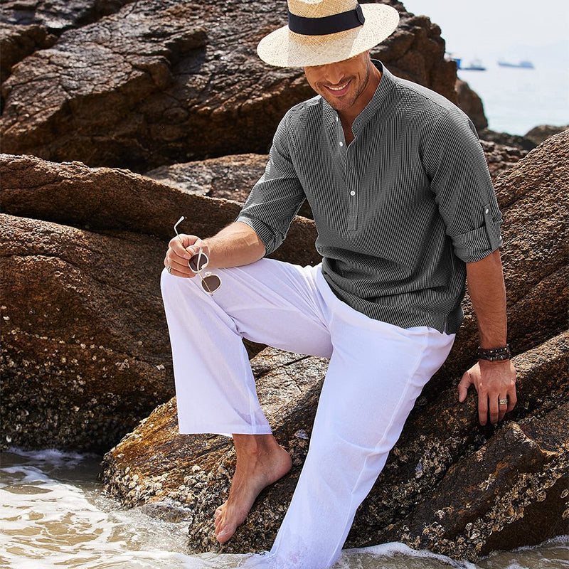 - Decoration: Stand collar, half button placket, long sleeves with tab