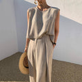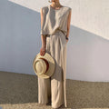 Short-Sleeved Shirt & Wide-Leg Pants Set for Women